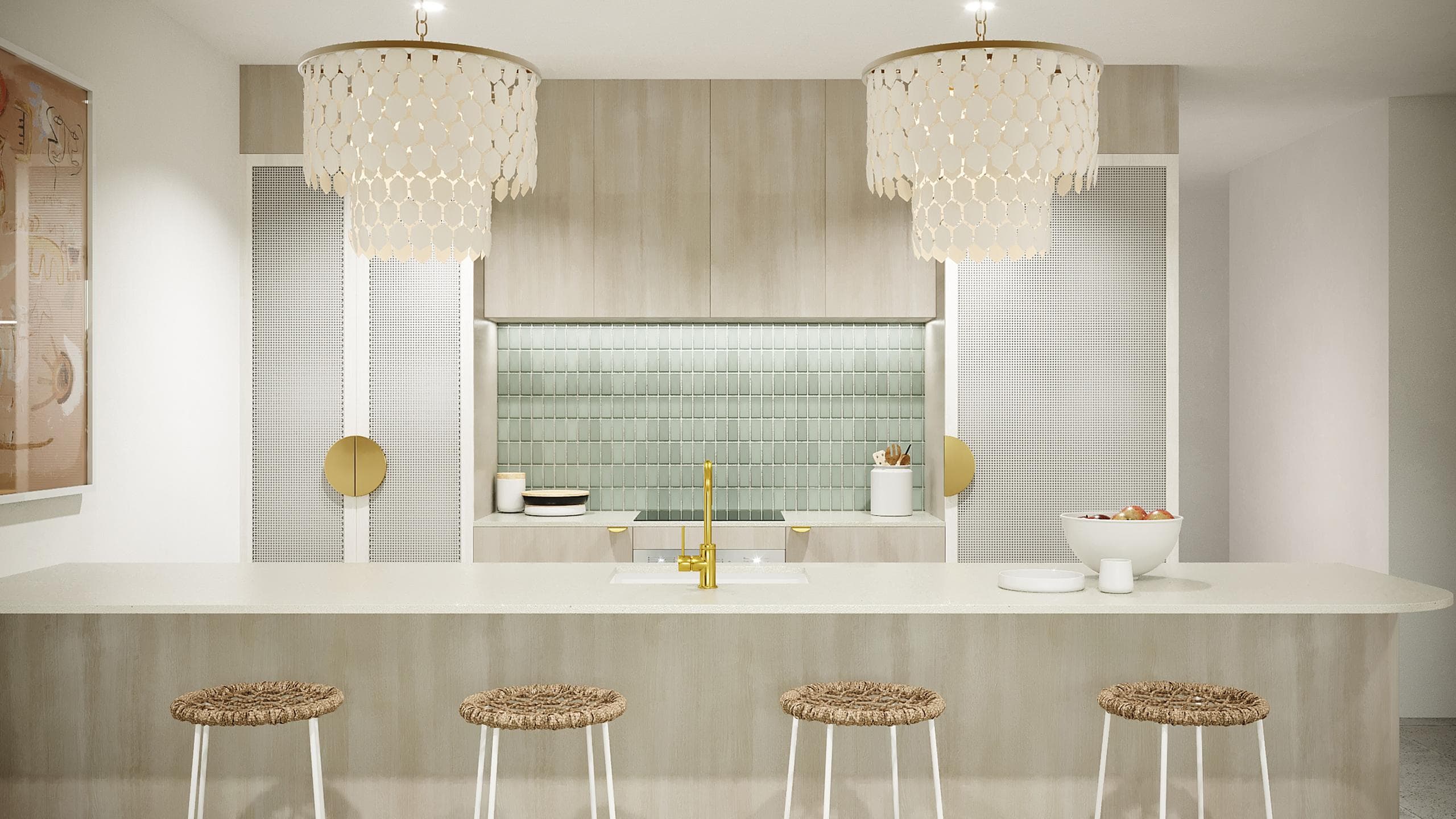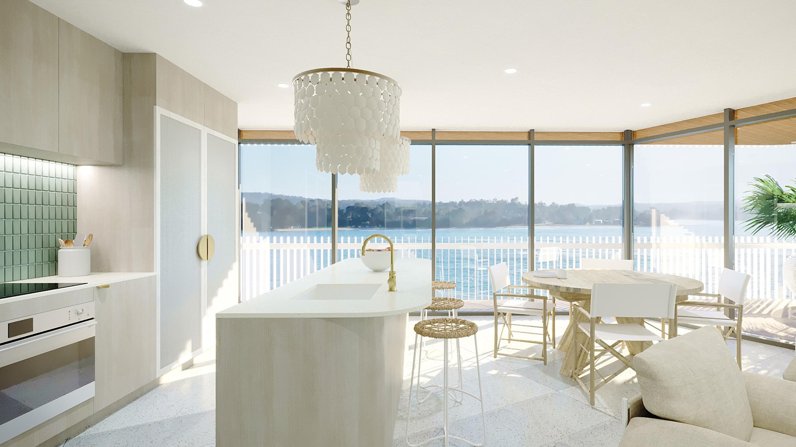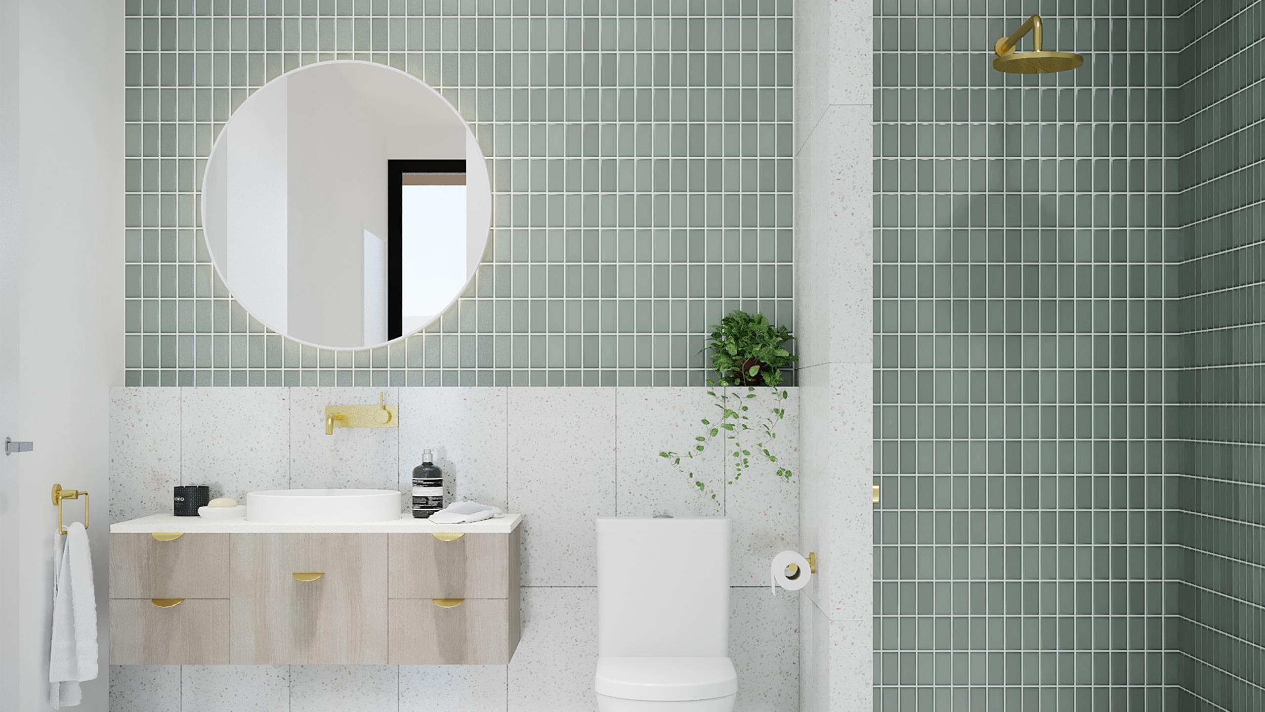 YOUR VERY OWN CHIC OASIS ESCAPE. SEA GREEN TILES, BLEACHED TIMBER, MARBLE AND BRUSHED BRASS CREATE A BOUTIQUE RESORT VIBE.